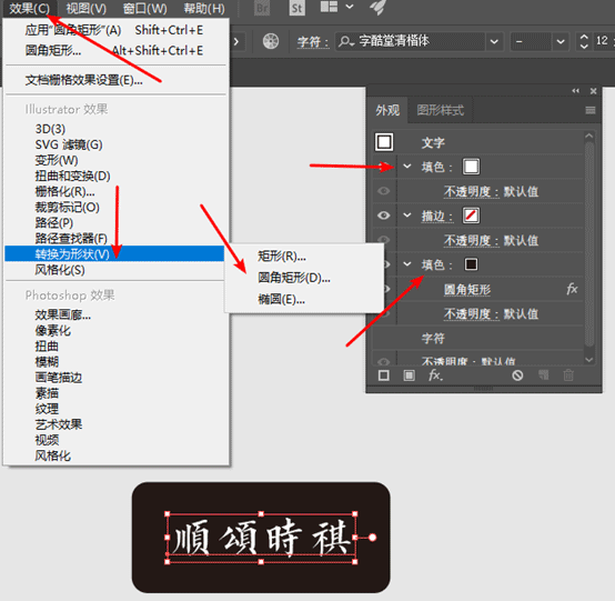 2,选中填色(这个填色将是你形状的颜色)>效果>转换为形状>圆角矩形,调节好矩形的相对大小。