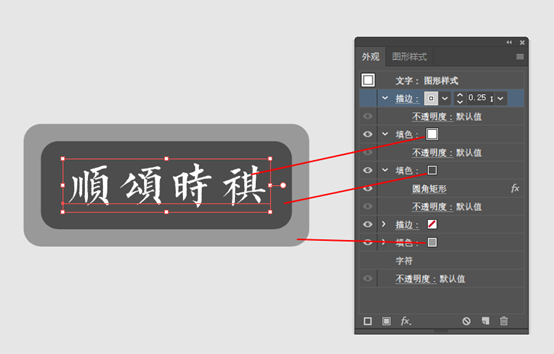 3,同样的增加一个圆角矩形,可以看到最上面的一个填色,是字的颜色