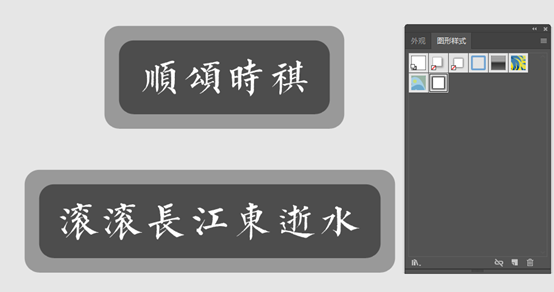 5,这下你该看出来了,可把效果里的样式当作衣服给字或其他的东西穿上。而不用“外观”的方式,相当于画上去,没有了可移植的特点。