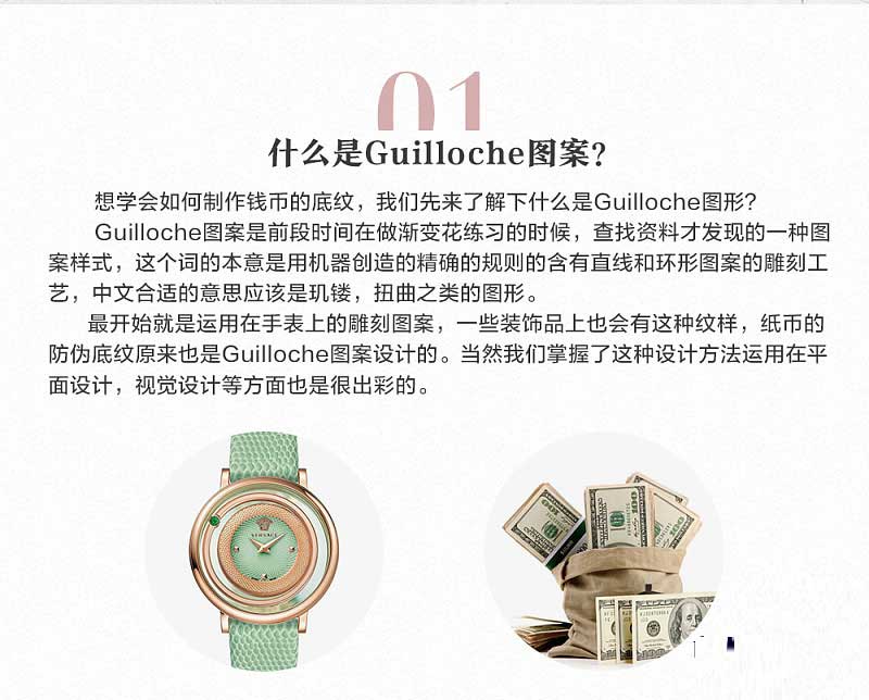 使用AI如何制作纸币底纹?AI绘制Guilloche纸币底纹的三种方法分享给大家!想学会如何制作纸币的底纹,我们先来了解一下什么是Guilloche图形?Guilloche一词是从法语guillochis演变而来的。它的本意是用机器创造的精确的规则的含有直线和环形图案的雕刻工艺。一个有着一个世纪历史的刻花形式。最开始运用在手表上的雕刻图案,这种图案不仅可以是纸币的防伪图案,用在女性类的产品也是非常不错的。好了,话不多说,下面让我们开始吧!
