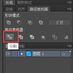 3、全选,点击“路径查找器-分割”,右键取消编组,删除掉左侧多余的部分;