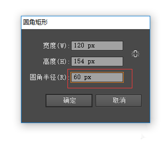 1、使用圆角矩形工具,在画布双击,设置半径为:60px,建立一个圆角矩形;
