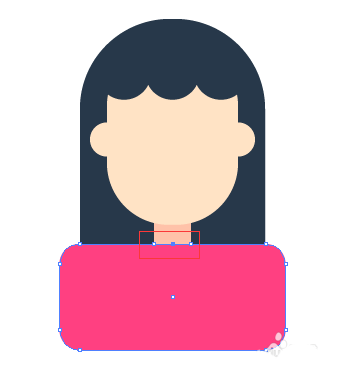 6、新建一个半径为:20px的圆角矩形作为衣服,用钢笔工具新建三个锚点,将中间的锚点往下拖动形成衣领,在脖子下面新建一小个白色矩形;