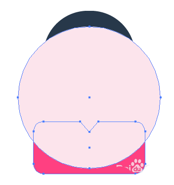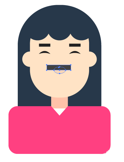 9、同样用路径查找器-减去顶层切出一个半圆的嘴巴,并在嘴巴上边新建一个锚点,删除掉,微笑的嘴巴就画好了;