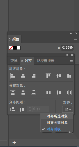 5、此时需要打开对齐面板,把对齐中默认的“对齐对象”改成“对齐所选对象”