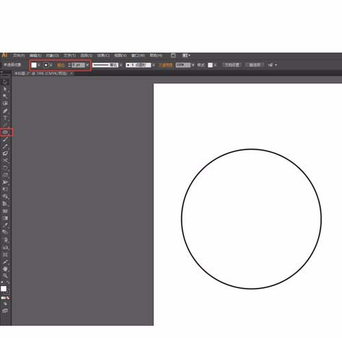 1、打开AI,新建随意尺寸的画布,然后选择椭圆工具画一个正圆,改为描边模式,描边为7px,填充黑色。