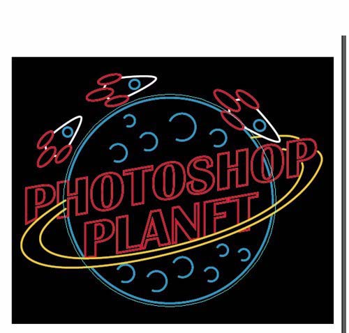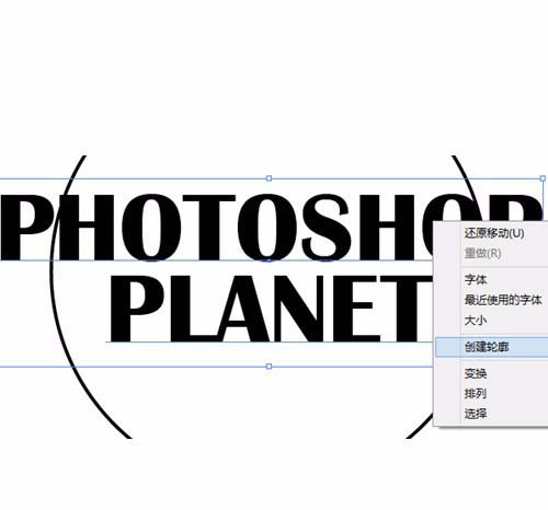 2、接着输入字体,这里小编写的是Photoshop planet,译为PS星球,然后右击创建轮廓,这样就能把字体改为描边模式,依然为7px。