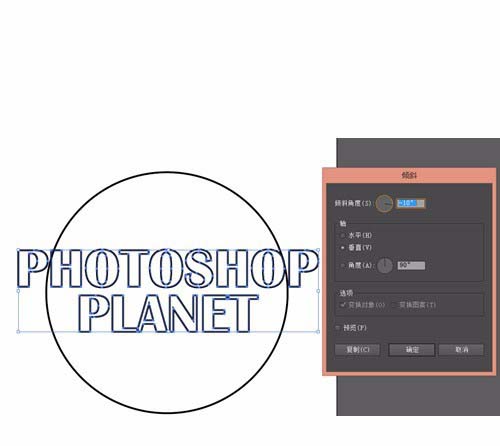 3、接下来在上方工具栏中选择对象-变换-倾斜,对字体进行变换。
