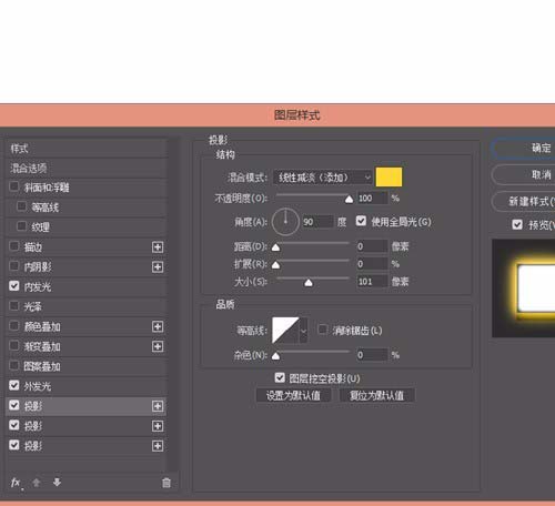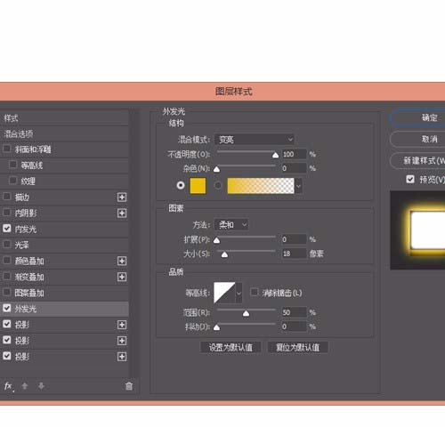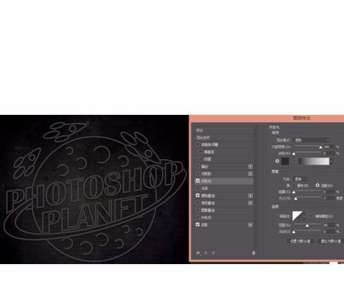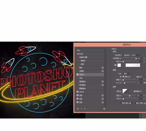 9、接着就是给文字部分设置霓虹灯的效果了。先来看一下最外侧的圆环。