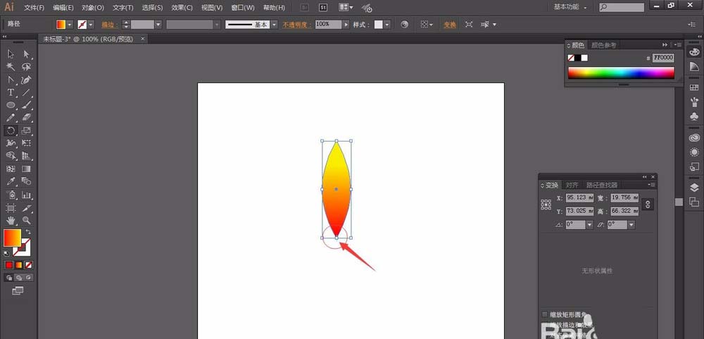 4、然后需要定位中心点,比如说定位在图形的下角位置,按住alt键然后在点击图形下角位置