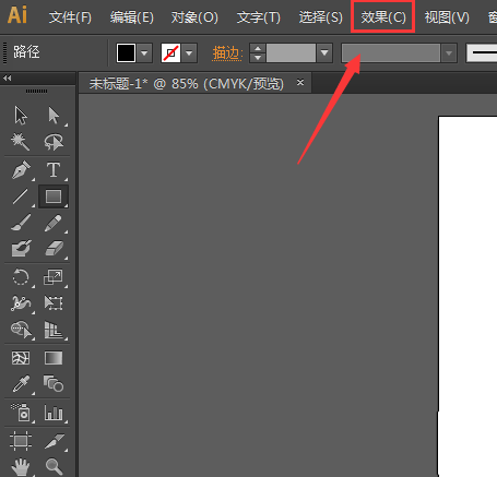 4、选择绘制的矩形然后在上面的菜单那里找到效果菜单,如图所示: