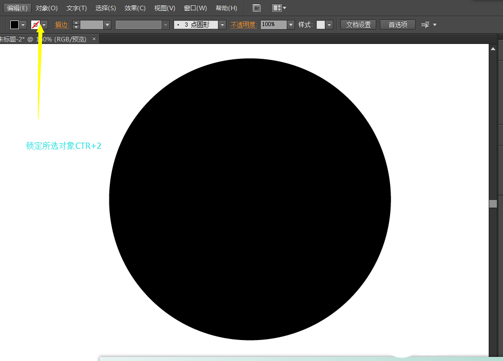 2、CTRL+2锁定对象,因为等会需要在圆形的上方进行添加,为了不让影响到添加,锁定对象是最好的方法。