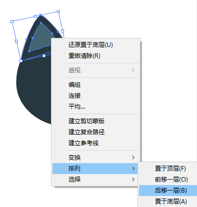 5、选中两个三角形,右键点击排列-后移一层,并复制一份放在对称的位置上;