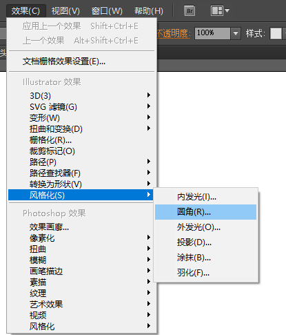 8、在眼睛下方,新建一个三角形,然后点击“效果-风格化-圆角”,半径设置为:6px,点击确定;