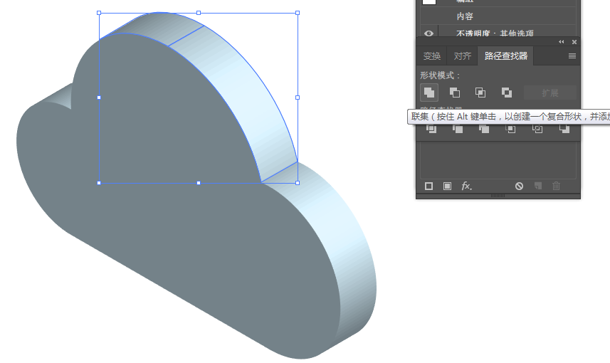 2、【路径查找器】面板,形状模式选择“联集”,完成云的绘制