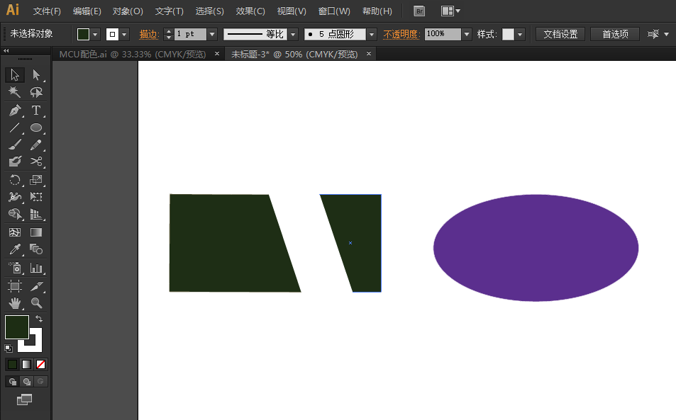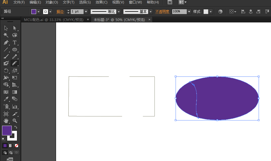 1、打开AI软件,新建一个空白文档,用左侧的椭圆工具和矩形工具,绘制一个椭圆和矩形,以用于演示。