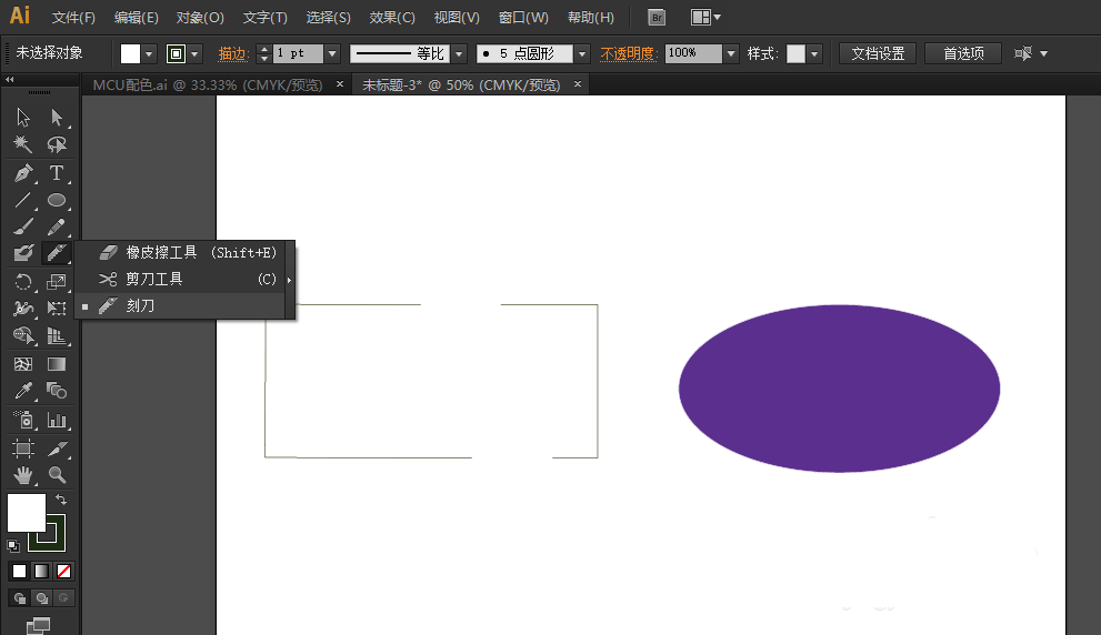4、如果要剪切为曲线,并且需要制作闭合的图形,则可以使用刻刀工具。在左侧工具栏中选中刻刀工具即可。