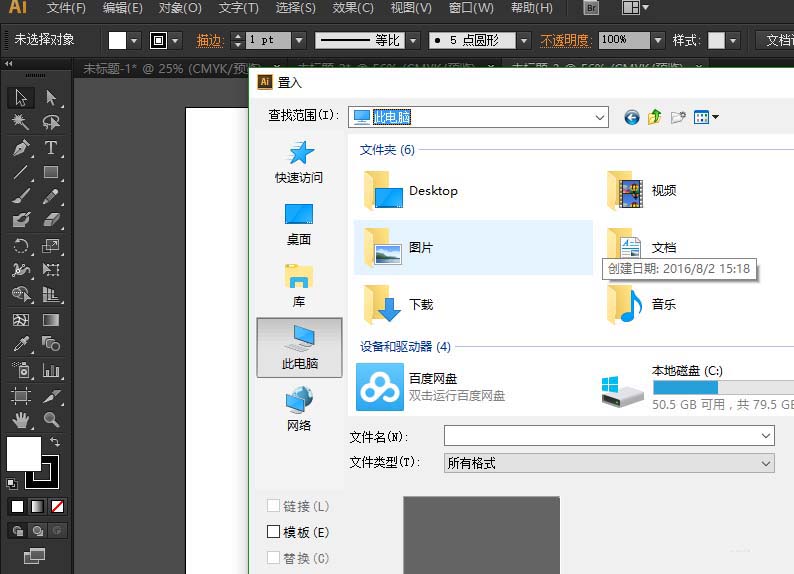 1、打开AI软件,新建一个空白文档。执行步骤文件-置入,就会弹出置入对话框,请选择下载好的背景图片。