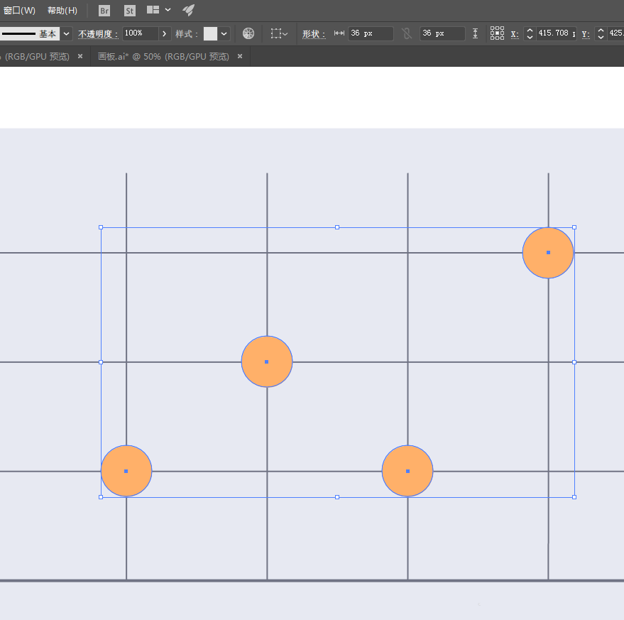 4、圆形全部放到合适的位置后编组。