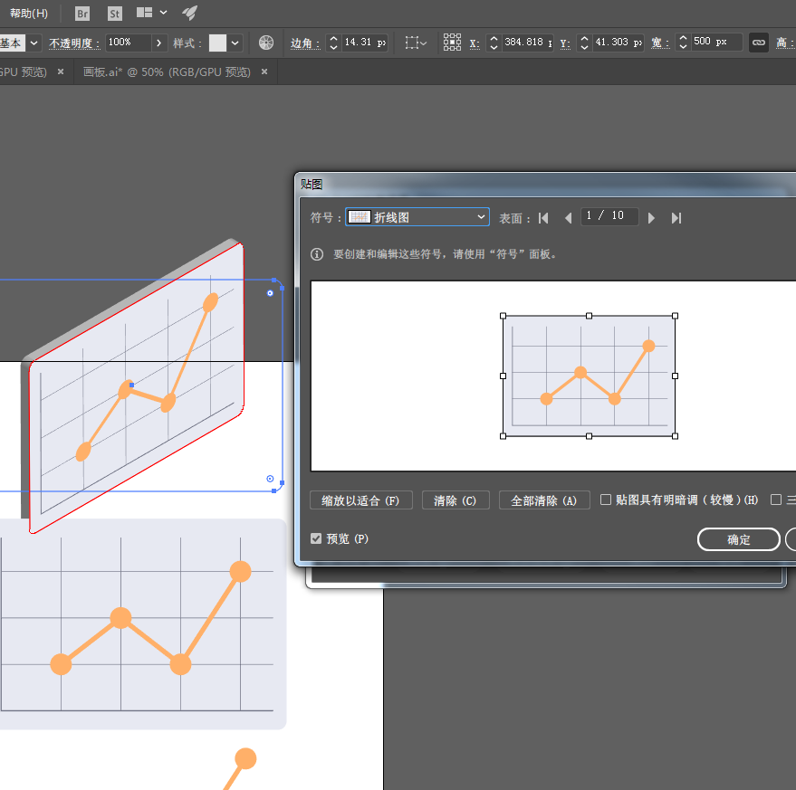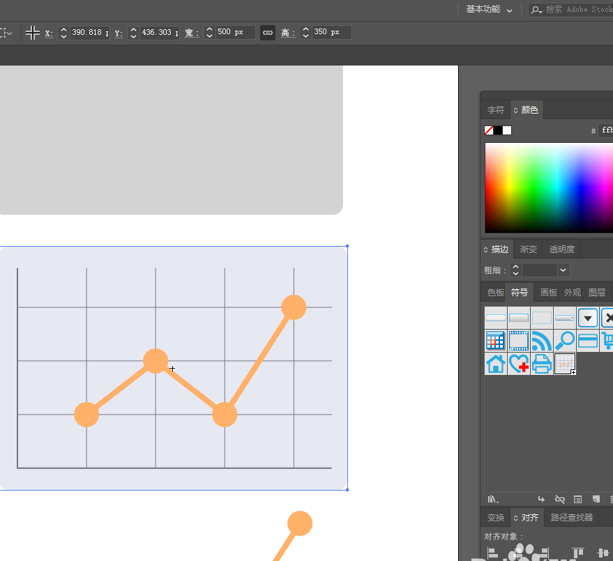 7、选中带坐标系的完整的折线图的所有图形,然后打开符号面板,拖到符号面板中,生成一个符号,便于贴图用。
