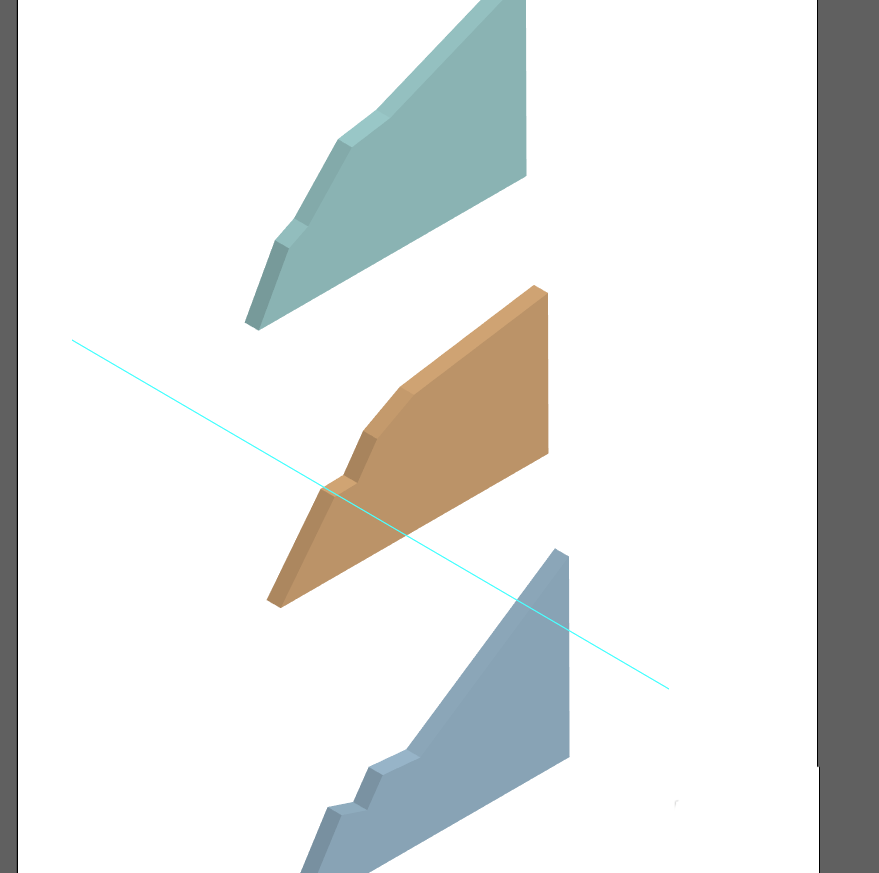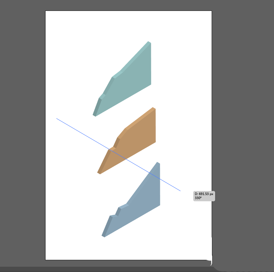 4、在移动三个堆积图时,为了保证等角视图的透视角度正确,我们需要三个图形沿30度角分布,最好的方法是自己做一个等角视图的底图,如果没有的话,因为这里涉及的操作简单,所以只需要用【直线】工具,拉成330度(-30度)的角度就可以了