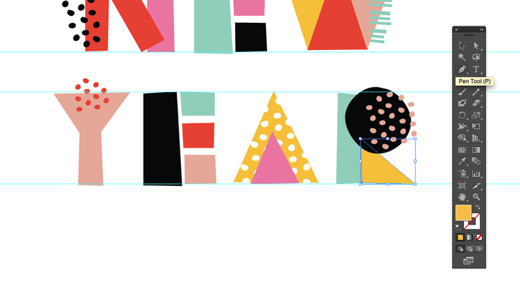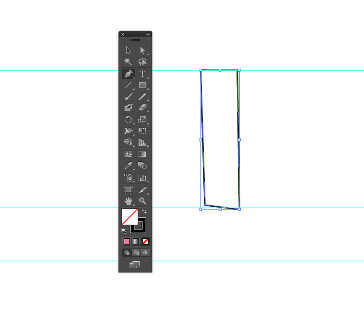 步骤7:继续在第一行辅助线上进行创作。使用钢笔工具绘制“P”字母的竖笔划 。