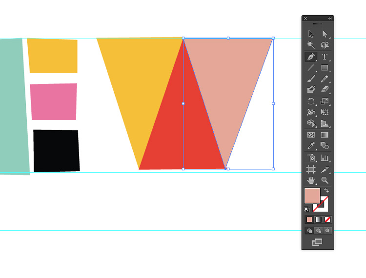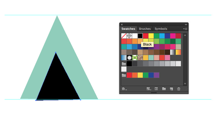步骤4:接下来我们绘制字母是“A”。(在绘制的过程中尽量以简单的图形来表示字母)。 “A”在这里可以呈现为简单的三角形,使用钢笔工具创建字母的基本形状,绘制一个三角形并填充为薄荷绿。