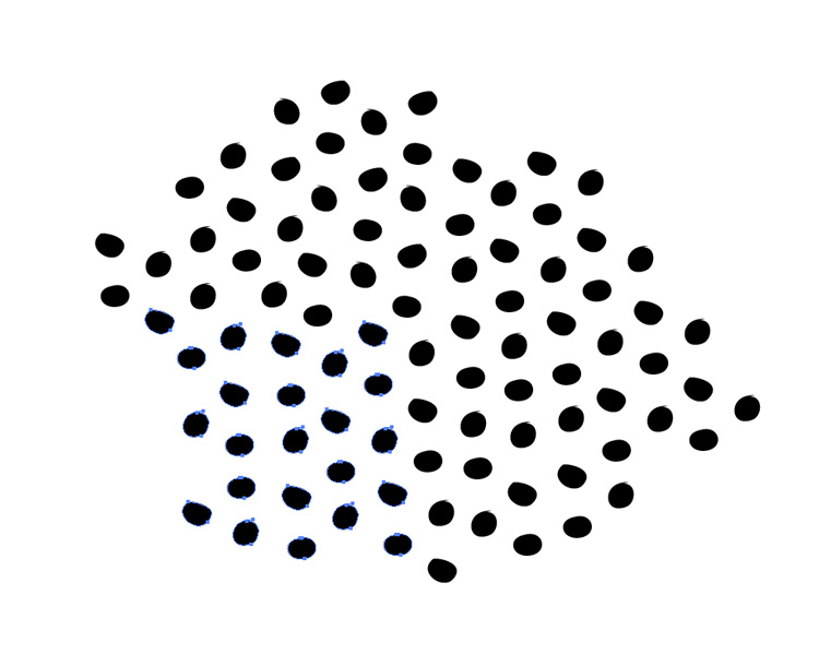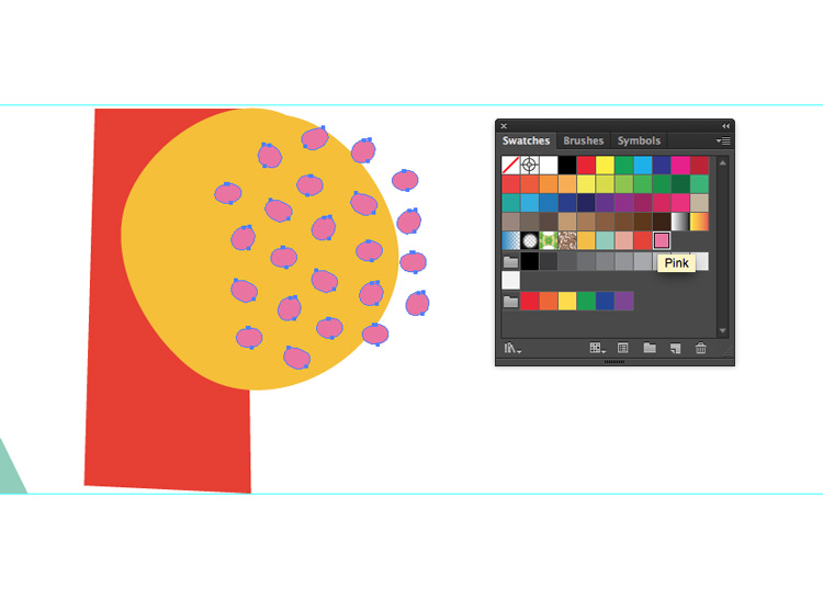 给圆形一个固定的填充色,然后反复复制粘贴,形成一组手绘波点图案。