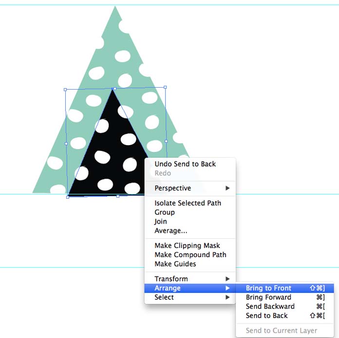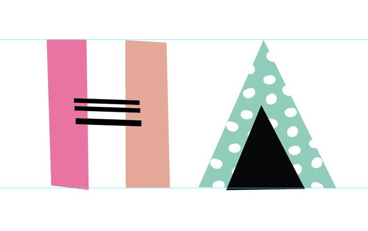 步骤6:移动手绘波点图案来覆盖“A”字母,并将它们填充为白色。