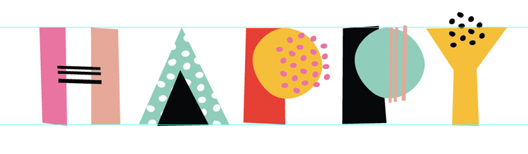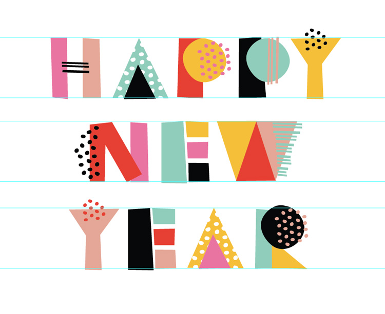 步骤12:根据前两个词组的字母,已经有足够的元素可以重复使用,大家可以自由创作最后一个单词“YEAR”。