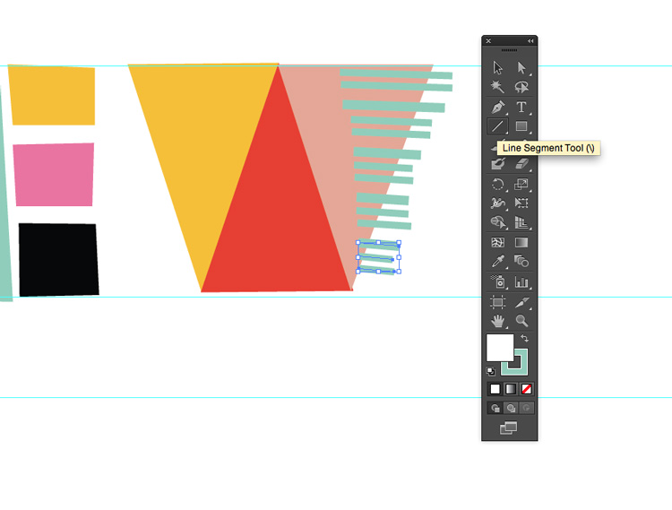 使用“ 线段工具”(\)在圆形图案上一层绘制一些长条并填充颜色。