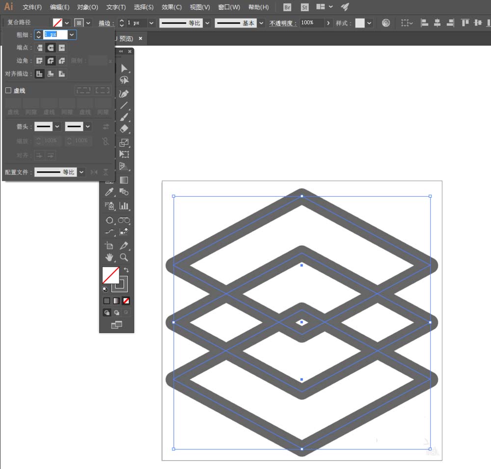 8、最后效果如图所示,在使用过程中最好【路径】-【轮廓化描边】。