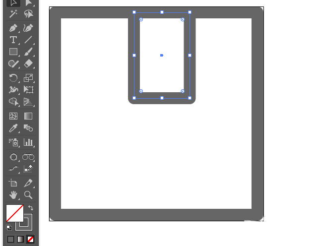 5、【添加锚点】工具,在顶部矩形的底边中心处增加一个锚点