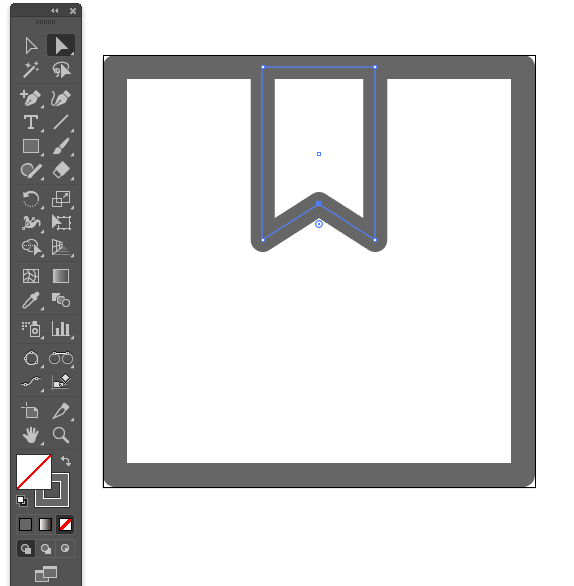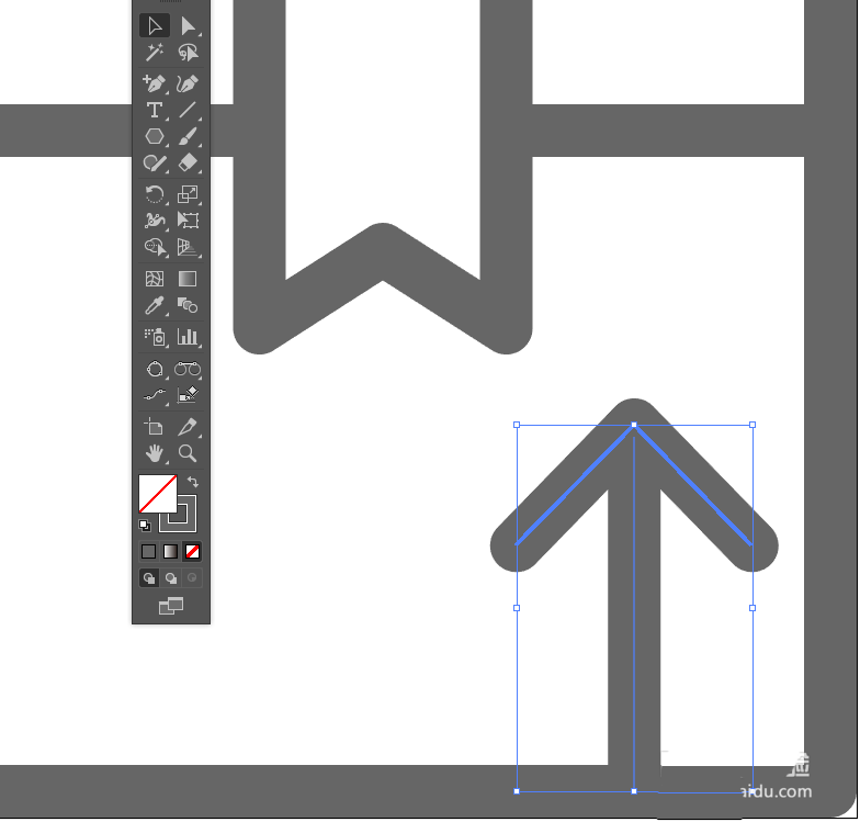 9、【添加锚点】工具在底边任意位置增加一个锚点,白箭头选中并删除