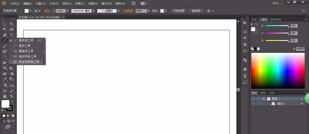 1、我们新建一个任意大小的文件作为演示,左边工具栏就可以找到极坐标网络工具。
