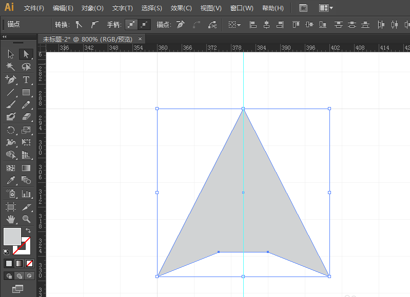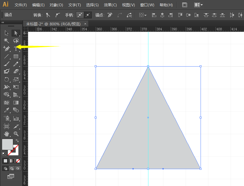 2、用删除锚点工具分别删除左上,右上,左中和右中四个点,这样就可以得到三角形了。