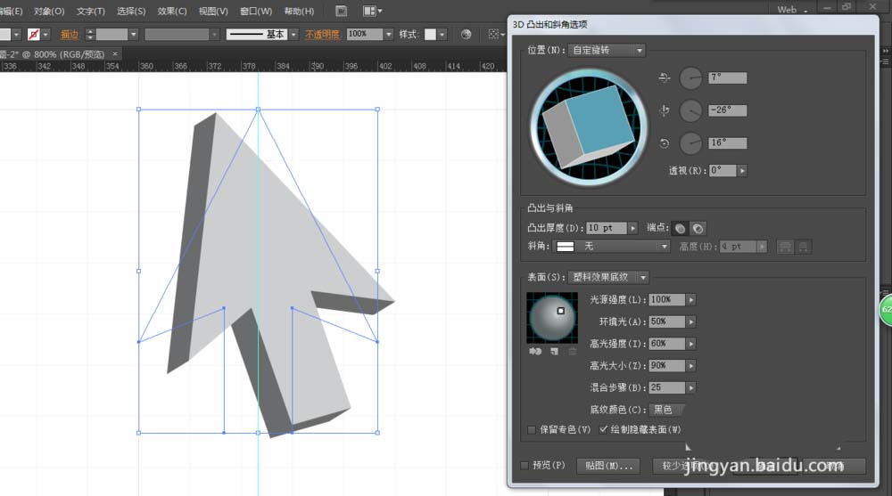 4、打开效果-3D凸出和斜角,调整一下参数制作出一个立体的图形。然后对图形进行扩展外观。