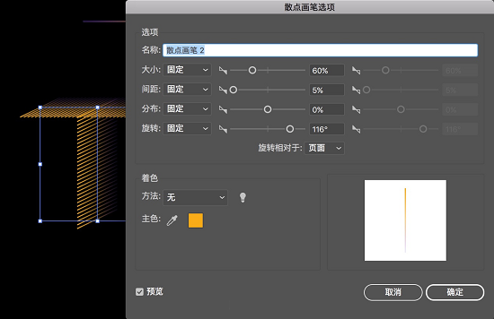 6、做到这里我们将字母路径选中,点击新创建的散点画笔,并调节大小、间距、分布等选项。