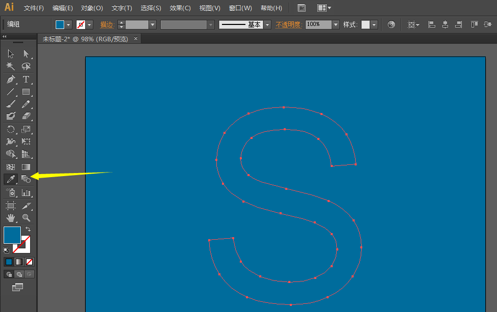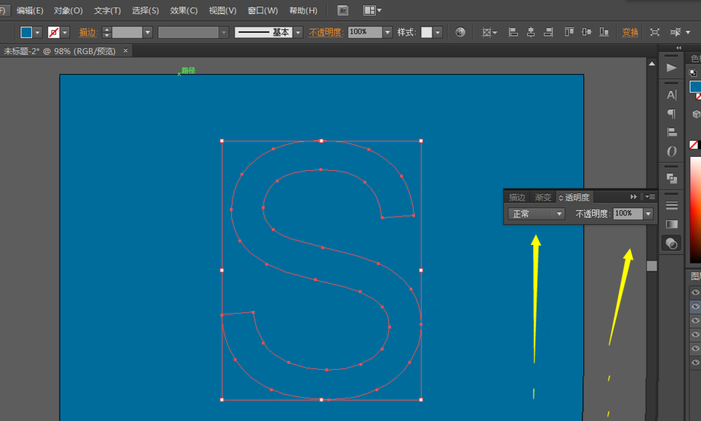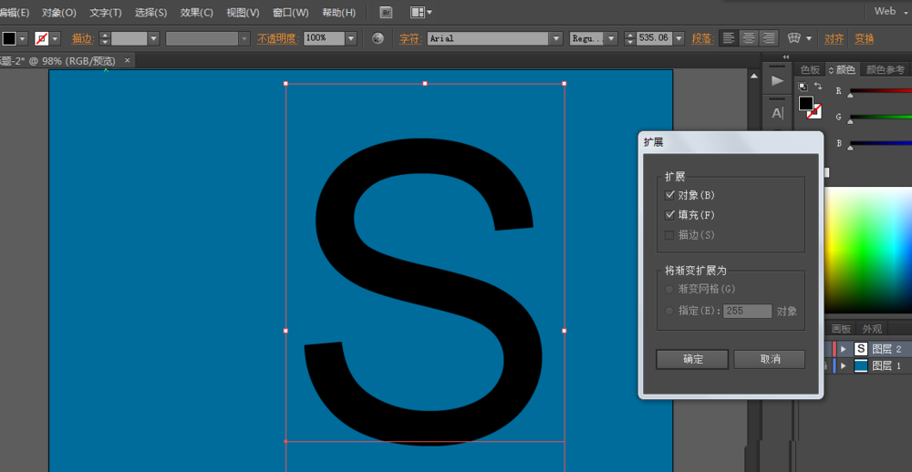 2、用文字工具写出S,然后调整字体和大小,并且扩展对象。