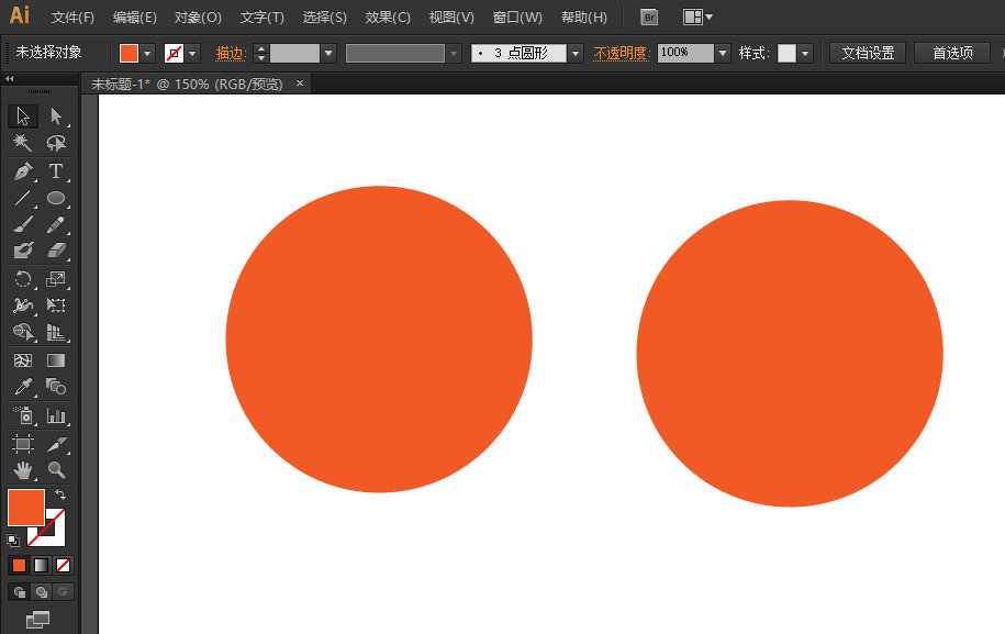 2、请用左侧工具栏中的椭圆工具,画出一个圆,填上色;然后,请复制这个圆,用作对比。