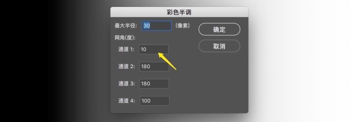 4、给一个半径值,调整通道一,尝试是否角度会改变,分别尝试10与50。