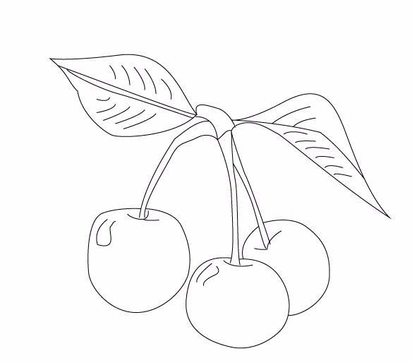 5、在樱桃的果把下面画出三个樱桃,如图所示:
