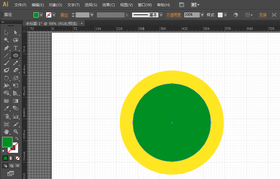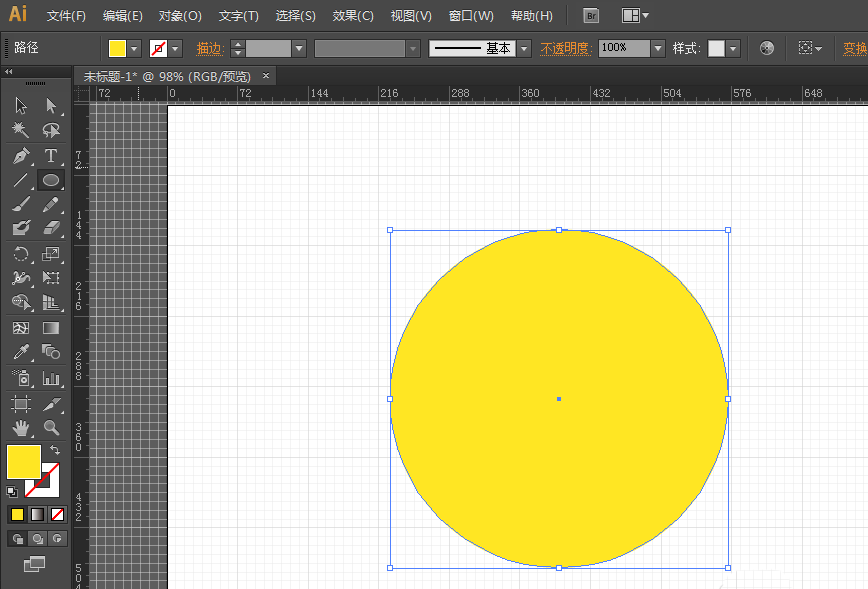 1、新建一个文档,用椭圆工具画出一个圆形,填充色为黄色,可以自己决定颜色,这就是救生圈的主色调。