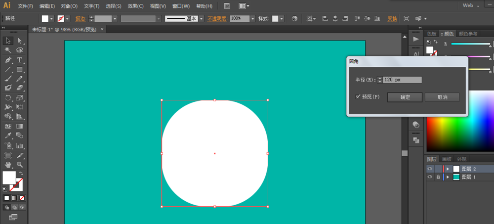 2、用矩形工具绘制一个正方形,并且用圆角效果制作圆角,然后再绘制一个椭圆形。