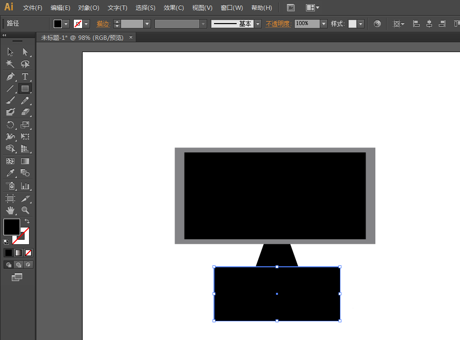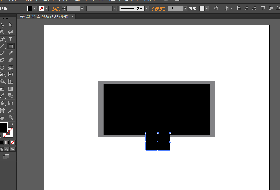 2、再画一个小一点的黑色的长方形,用矩形工具绘制一个小的长方形作为底座,用直接选择工具改变大小。