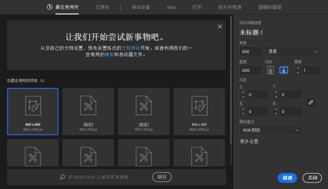 打开你的Adobe Illustrator,第一步:Ctrl+N新建文档,建一个800*600的RGB文档即可,如图。