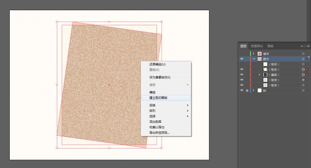 这一步我们需要创建"剪切蒙版"了,我这里只讲操作,零基础的同学之后可以百度一下AI中的剪切蒙版了解概念。
