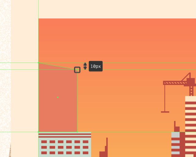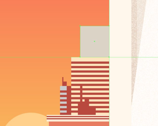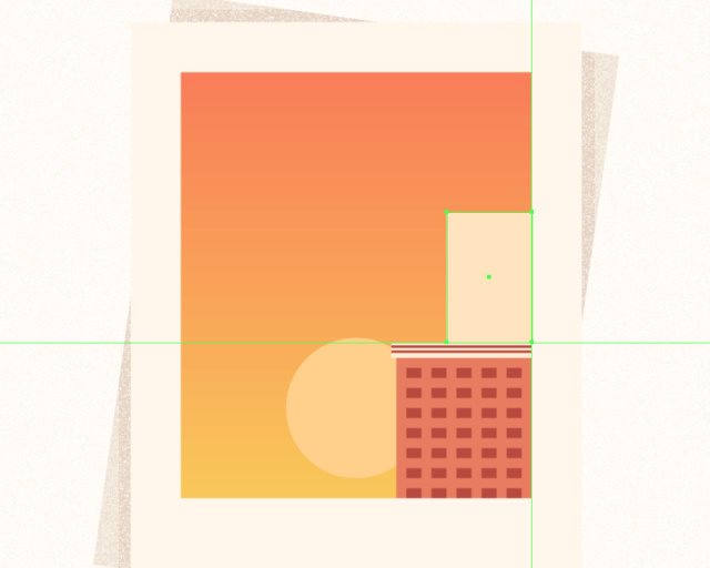 创建108x112px的矩形作为第一个建筑,颜色#E87D60,然后对齐到渐变图层的右下角,开始在建筑物上工作。