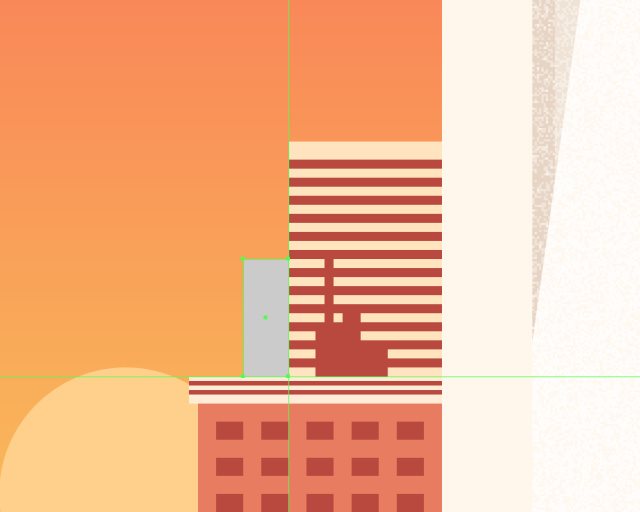 使用12x56px的矩形(#BA473C)作为建筑物的硬阴影,放在灰色矩形右侧。