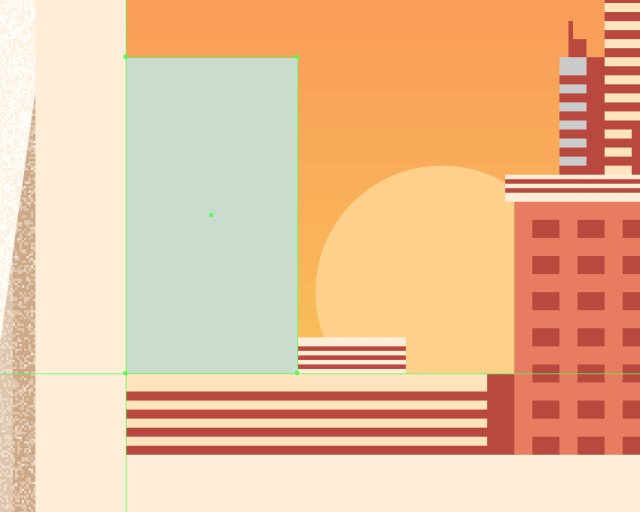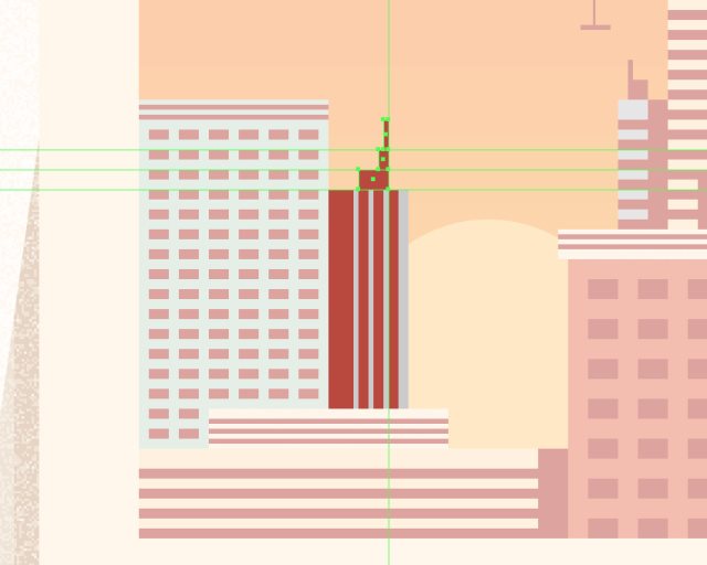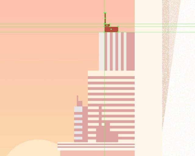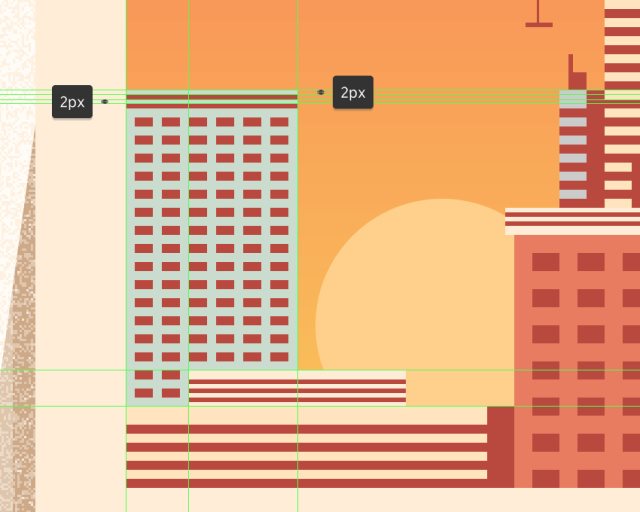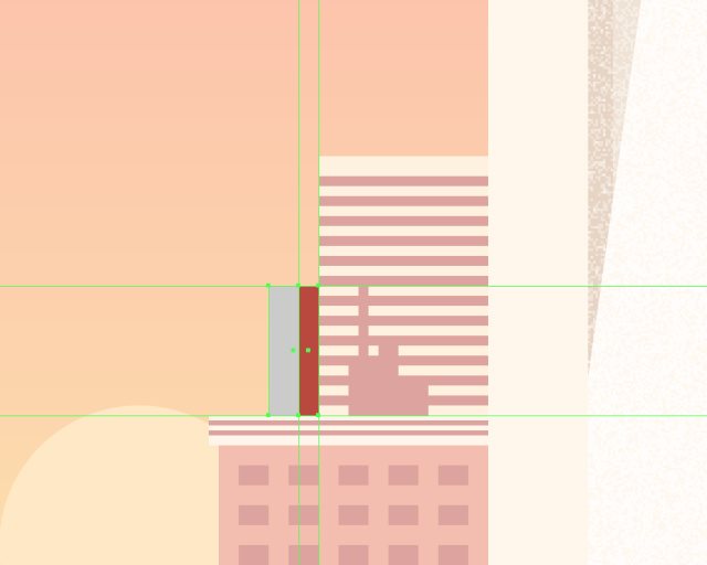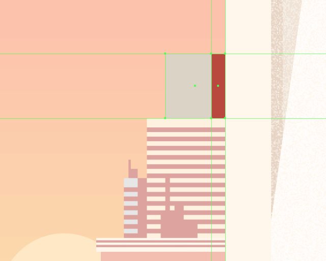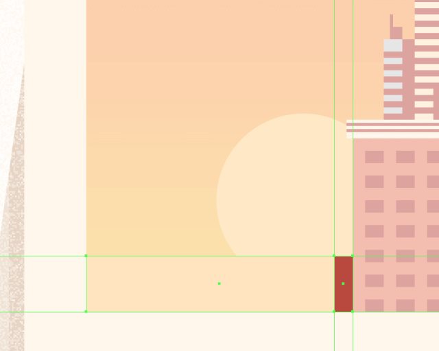 使用10x88px的矩形(#BA473C)作为建筑物的硬阴影,居中对齐到建筑物的左边。